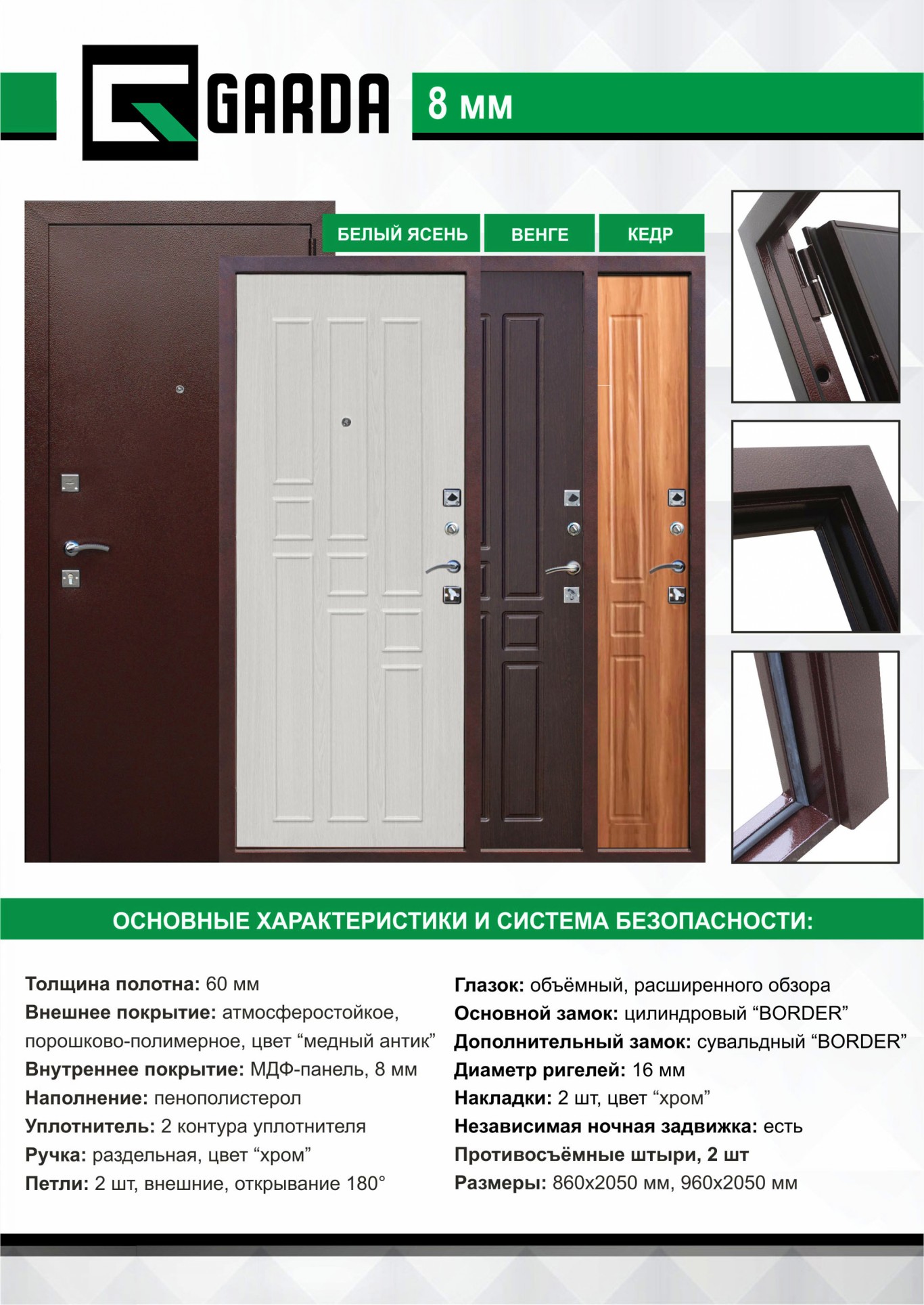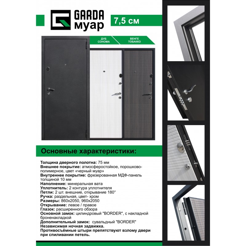 Входная дверь «Гарда» – универсальная металлическая дверь. Характерные черты ей придают практичный дизайн в сочетании с использованием современных качественных материалов. Цветовое исполнение позволяет установить модель во многие интерьеры, не привязываясь к определенному стилю.