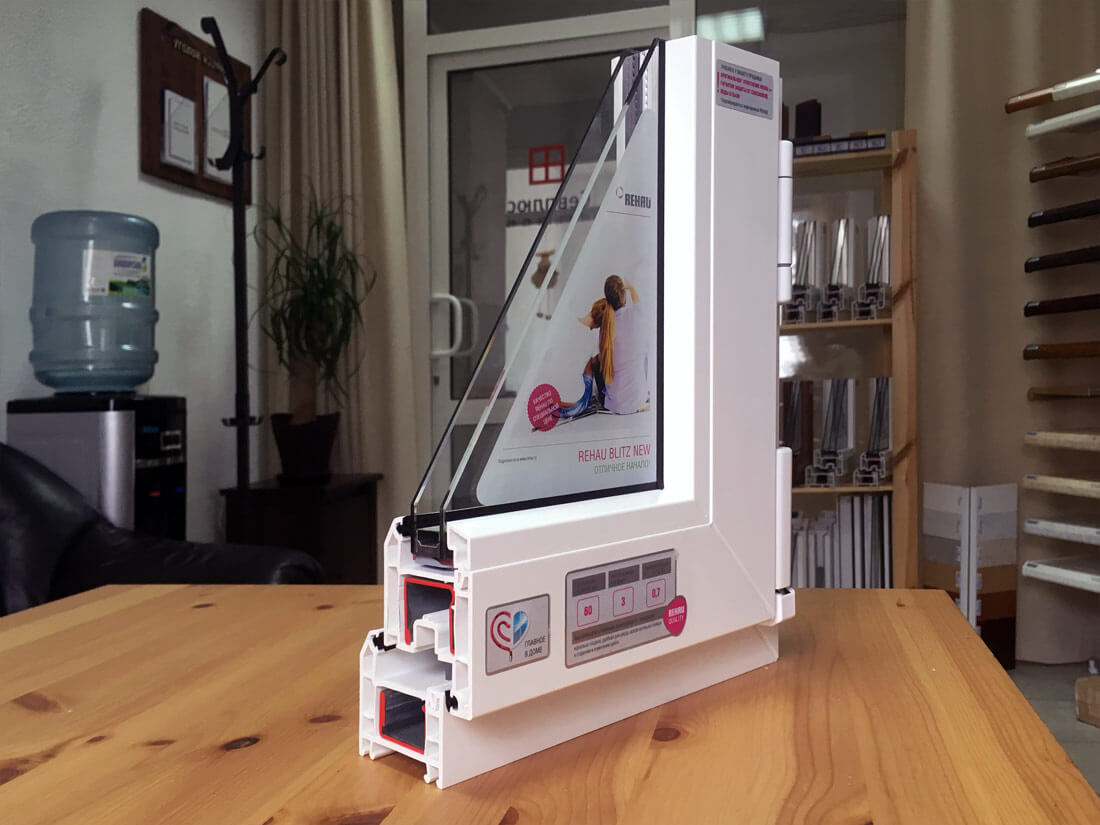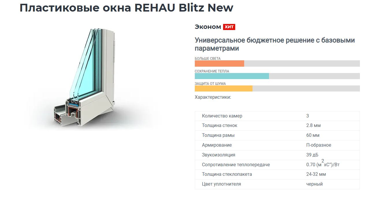 REHAU Blitz – немецкий базовый трехкамерный профиль с системной глубиной 60 мм, наиболее экономичный вариант из всей линейки REHAU.